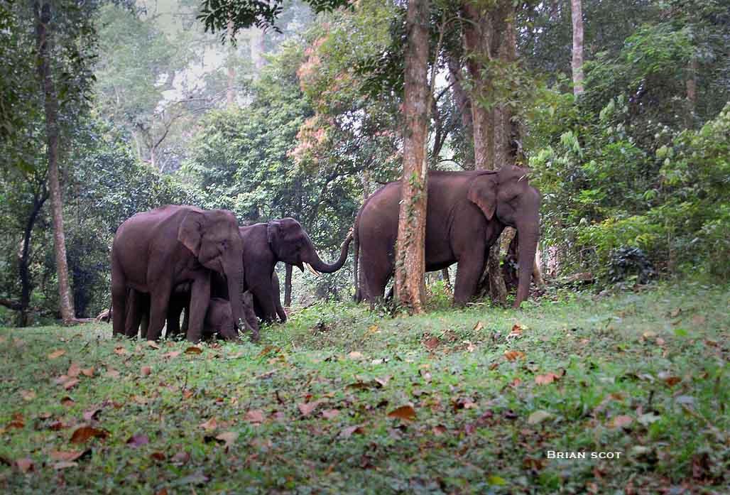 As we were walking down a forest path our guide suddenly froze in front of us, and motioned us to do the same. He pointed into a gully on the right, and we could see two large grey mounds, one of which was moving – Elephants, about 50 meters away.